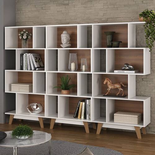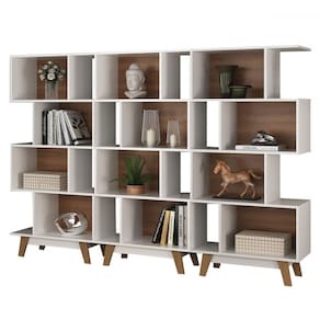 O(a) Estante para Livros 12 Nichos Branco/Nogal Cj-008 - Hecol Móveis é produzido em MDP na escala de brilho Fosco, e possui um grau de dificuldade de montagem: Médio.