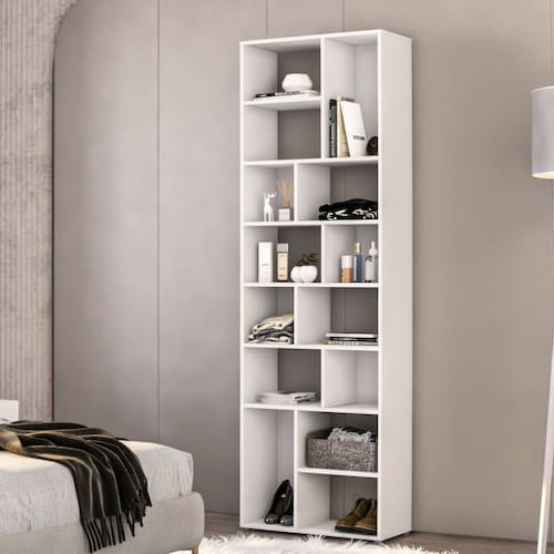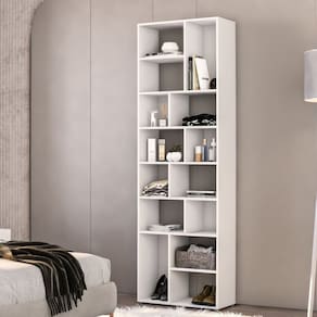 A estante DALLAS possui 14 nichos e mede 2,10 metros de altura, sendo ideal para organizar e decorar ambientes. Seu design moderno e funcional acomoda livros, objetos decorativos e outros itens, aproveitando bem o espaço vertical. Feita em MDP com acabamento final em Bordas PVC, combina praticidade durabilidade e estilo. Produto Montado: Sim Acabamento da Prateleira: Finish Foil Ambiente Principal: Escritório codigo_ean: 7909903980842 Complexidade da Montagem: Baixa: pode ser montado por uma pessoa sozinha Cor: Branco Cor do Produto: Branco Cor Flex: Não Cor Interna: Branco Escala de Brilho: Fosco Escala de Brilho da Prateleira: Fosco Informações Complementares: Bordas em PVC Itens Inclusos: Uma Estante Completa, kit de ferragem e manual de montagem Linha ou Coleção: Dallas Manual de Montagem e Instalação: https://product-hub-prd.madeiramadeira.com.br/961651/documents/2e857f1f-491b-4bb7-a0fc-30e9fe30b32293e23721575092172718376108.pdf Marca: Miroo Móveis Material da Prateleira: MDP Material Principal: MDP Montagem Flex: Não Necessita Montagem: Sim Origem do Produto: Nacional Peso: 34,71 kg Peso Máximo por Prateleira: 3 kg Possui Acabamento na Parte de Trás: Não Possui Espelho: Não Possui iluminação: Não Possui Pés: Não Possui Portas: Não Possui Prateleiras: Sim Possui Rodízio: Não Possui Vidro: Não Quantidade de Nichos: 10 ou Mais Recomendações de Uso, Manutenção e Limpeza: Pano limpo e levemente umidecido Sapatas Niveladoras: Não Sistema de Montagem: Minifix, Parafusos e Cavilhas Suporta Até (kg): 30 kg Marca: Miroo Móveis