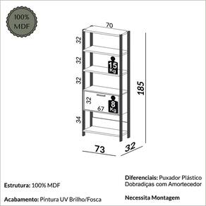 A estante Dalla Costa possui 1 torre basculante medindo 73cm - produzida 100% em MDF na cor off white/freijófosco e para maior durabilidade é aplicado 6 camadas de pintura UV. A Estante Torre é um móvel versátil, que pode ser utilizado de várias maneiras e locais: na sala, no quarto ou no escritório. Seu design moderno se adapta aos ambientes, podendo servir de estante para livros ou apenas acomodando peças de decoração. Com cores que favorecem a combinam com outras mobílias. Conheça toda linha da Dalla Costa Produto Montado: Sim Acabamento da Gaveta: Pintura UV Acabamento da Prateleira: Pintura Ambiente Principal: Sala de Estar codigo_ean: 7900288152305 Complexidade da Montagem: Baixa: pode ser montado por uma pessoa sozinha Cor: Freijó / Off White Cor do Produto: Freijo / Off White Cor Interna: Off White Escala de Brilho: Brilhante Escala de Brilho da Gaveta: Brilhante Escala de Brilho da Prateleira: Brilhante Gaveta com Chave: Não Itens Inclusos: 1 Estante e Manual de Montagem Manual de Montagem e Instalação: https://product-hub-prd.madeiramadeira.com.br/701166197/documents/396f19f6-77b4-40ac-9aa1-e485896baaeb2933856378117473973923314.pdf Marca: Pradel Móveis Material da Gaveta: MDF Material da Prateleira: MDF Material do Puxador da Gaveta: Plástico Material Principal: MDF Necessita Montagem: Sim Origem do Produto: Nacional Peso: 24 kg Peso Máximo por Gaveta: 5 kg Peso Máximo por Prateleira: 5 kg Possui Acabamento na Parte de Trás: Sim Possui Espelho: Não Possui iluminação: Não Possui Pés: Não Possui Portas: Não Possui Prateleiras: Sim Possui Rodízio: Não Possui Vidro: Não Quantidade de Gavetas: 01 Gaveta Recomendações de Uso, Manutenção e Limpeza: Limpeza com pano levemente umedecido Sapatas Niveladoras: Não Sistema de Montagem: Minifix, parafuso e cavilhas Suporta Até (kg): 20 kg Tipo de Corrediça da Gaveta: Metálica Simples Tipo de Puxador da Gaveta: Externo