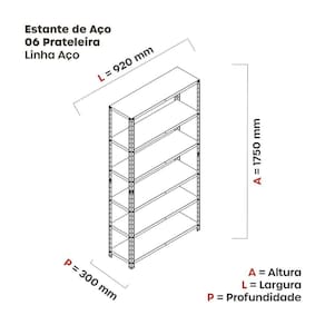 Estante de aço Pandin tem a melhor qualidade do mercado, porque são confeccionadas em chapas #20 e #26 (0,90mm e 0,45mm) priorizando sempre a qualidade, segurança e bem-estar no dia a dia dos nossos clientes. Produto Montado: Sim Acabamento da Prateleira: Pintura Acabamento dos Pés: Pintura Altura dos Pés: 3 cm Ambiente Principal: Escritório codigo_ean: 7909903423851 Complexidade da Montagem: Baixa: pode ser montado por uma pessoa sozinha Cor: Branco Cor do Produto: Branco Cor Flex: Branco Cor Interna: Branco Escala de Brilho: Semi-Fosco Escala de Brilho da Prateleira: Semi-Fosco Itens Inclusos: 1 Estante com 6 prateleiras Linha ou Coleção: Aço Manual de Montagem e Instalação: https://product-hub-prd.madeiramadeira.com.br/849164/documents/f5415e3c-7424-4b43-9f2e-ce137416e6ab8735estantevu06prateleiras.pdf Material da Prateleira: Aço Material dos Pés: Polipropileno Material Principal: Aço Necessita Montagem: Sim Origem do Produto: Nacional Peso: 9,83 kg Peso Máximo por Prateleira: 20 kg Possui Espelho: Não Possui iluminação: Não Possui Pés: 04 Possui Portas: Não Possui Rodízio: Não Possui Vidro: Não Recomendações de Uso, Manutenção e Limpeza: Utilizar um pano levemente umedecido com água, para finalizar utilizar um pano seco. Sapatas Niveladoras: Sim Sistema de Montagem: Parafuso Suporta Até (kg): 20 kg Ean: 7909903423851