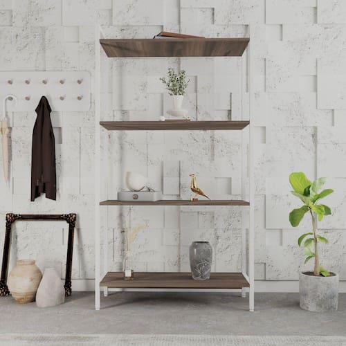 Estante para Livros Industrial Aço Multiuso 4 Prateleiras 146x80cm Active Yescasa Nogal / Est.Branca - Marrom