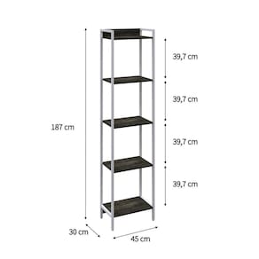 Estante Active 45X30X187cm C/05 Prateleiras Carvalho Dark / Est.Preta: 45 x 30 x 187 cm