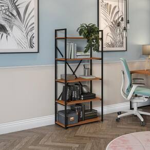 A Estante Alta Kappesberg 5 Prateleiras é perfeita para quem busca organização com estilo industrial moderno. Com acabamento em Canela e estrutura metálica Preto Fosco, torna-se um destaque decorativo na sala, escritório ou quarto, combinando funcionalidade e design contemporâneo.