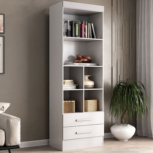 O(a) Estante para Livros Modulare 2 Gavetas 4 Prateleiras Branco - Loja é produzido em MDP na escala de brilho Fosco, e possui um grau de dificuldade de montagem: Médio.