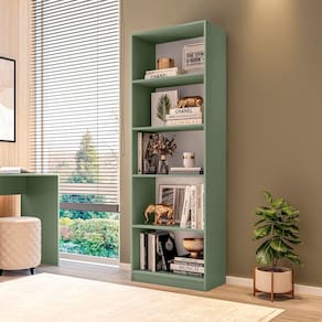 Com ótima altura e visual moderno, a Estante Livreiro Multiuso Montreal é a escolha ideal para você que adora livros ou colecionar objetos, perfeita para organizar sua sala de estar ou escritório. Além de possuir 5 nichos bem distribuídos, na medida certa para manter todos os objetos no seu devido lugar, é uma maravilhosa peça multifuncional que vai inovar o seus ambientes com um toque de charme e beleza! Produto Montado: Sim Acabamento da Prateleira: Melamínico Acabamento dos Pés: BP Ambiente Principal: Sala de Estar codigo_ean: 7900288262240 Complexidade da Montagem: Média: pode ser montado por mais de uma pessoa e/ou necessite de maior conhecimento para montagem Cor: Verde Cor do Produto: Verde Cor Flex: Não Cor Interna: Verde Escala de Brilho: Semi-Brilho Escala de Brilho da Prateleira: Semi-Brilho Itens Inclusos: 1 Estante, Kit Ferragens e Manual de Montagem Linha ou Coleção: Montreal Manual de Montagem e Instalação: https://product-hub-prd.madeiramadeira.com.br/924550/documents/ca3d2076-323c-4f5e-93ff-ca973b0b2fd8742336manual.pdf Marca: Yescasa Material da Prateleira: MDP Material dos Pés: Plástico Material Principal: MDP Montagem Flex: Não Necessita Montagem: Sim Origem do Produto: Nacional Peso: 23,4 kg Peso Máximo por Prateleira: 5 kg Possui Acabamento na Parte de Trás: Sim Possui iluminação: Não Possui Pés: 04 Possui Portas: Não Possui Prateleiras: Sim Possui Rodízio: Não Possui Vidro: Não Quantidade de Nichos: 05 Recomendações de Uso, Manutenção e Limpeza: Limpar com pano umedecido, sem adição de produtos químicos. Sapatas Niveladoras: Não Sistema de Montagem: Parafusos, pregos, cantoneira e cavilhas. Suporta Até (kg): 30 kg