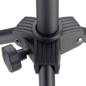 O pedestal do suporte possui altura máxima de 103 cm e altura mínima de 49 cm, permitindo ajustes de acordo com sua preferência e necessidade. Além disso, os pés emborrachados garantem maior aderência e evitam que o suporte deslize durante a performance.