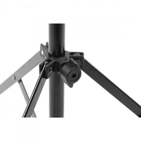 Tripé ajustável com sapatas que ajudam na estabilidade e absorção de impacto.