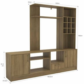 O rack para TV até 64 polegadas Irlanda da Mademóvel é o móvel ideal para deixar sua sala de estar de cara nova com mais elegância e modernidade! A gaveta, prateleiras e nichos são fundamentais para armazenar objetos e decoração, trazendo ao ambiente mais organização e estilo. Este rack conta também com nicho para colocar até 9 garrafas deitadas. Produto Montado: Sim Acabamento da Gaveta: Finish Foil Acabamento da Porta: Finish Foil Acabamento da Prateleira: Finish Foil Ambiente Principal: Sala de Estar codigo_ean: 7900288284518 Complexidade da Montagem: Média: pode ser montado por mais de uma pessoa e/ou necessite de maior conhecimento para montagem Cor: Mel Cor do Produto: Mel Cor Flex: Não Cor Interna: Mel Escala de Brilho: Fosco Escala de Brilho da Gaveta: Fosco Escala de Brilho da Porta: Fosco Escala de Brilho da Prateleira: Fosco Espessura do Painel: 1,5 cm Espessura do Tampo: 15 mm Fixação na Parede: Sim Gaveta com Chave: Não Ideal para TVs até (Polegadas): 65 Itens Inclusos: 1 Estante, Kit Ferragens e Manual de Montagem Linha ou Coleção: Irlanda Manual de Montagem e Instalação: https://product-hub-prd.madeiramadeira.com.br/400286422/documents/fee298b3-3057-421e-8459-26ce7726cd8b3308805522517619423311017.pdf Marca: Mademovel Material da Gaveta: MDP Material da Porta: MDP Material da Prateleira: MDP Material do Puxador da Gaveta: PVC Material do Puxador da Porta: PVC Material Principal: MDP Montagem Flex: Não Necessita Montagem: Sim Origem do Produto: Nacional Peso: 61,76 kg Peso Máximo por Gaveta: 5 kg Peso Máximo por Prateleira: 5 kg Possui Espelho: Não Possui iluminação: Não Possui Nichos: 10 ou Mais Possui Passa Cabos: Não Possui Pés: Não Possui Prateleiras: Sim Possui Rodízio: Não Possui Vidro: Não Quantidade de Gavetas: 01 Gaveta Recomendações de Uso, Manutenção e Limpeza: Para a limpeza do móvel utilizar pano levemente umedecido com água e sabão neutro Sistema de Montagem: Parafusos e cavilhas Suporta Até (kg): 60 kg Suporte de TV Universal Incluso: Não Tipo de Corrediça da Gaveta: Metálica Simples Tipo de Dobradiça/Corrediça da Porta: Metálica Tipo de Puxador da Gaveta: Externo Tipo de Puxador da Porta: Externo Marca: Não Informado