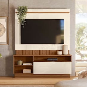 Lindo home Diamantina, possui porta basculante com articulador, detalhe do painel ripado, prateleira superior de 2,5cm, puxador de alumínio, possui nichos para você decorar como desejar, suporta TV de até 60" Produto Montado: Sim Acabamento da Porta: Pintura UV Acabamento da Prateleira: Pintura UV Altura dos Pés: 10 cm Altura Máxima dos Pés: 10.0000 Ambiente Principal: Sala de Estar codigo_ean: 7900288163431 Complexidade da Montagem: Alta: deve ser montado por um montador especializado Cor: Amêndoa / Perola Metalizado Cor do Produto: Amêndoa / Perola Metalizado Cor Interna: Amêndoa Escala de Brilho: Semi-Brilho Escala de Brilho da Porta: Semi-Brilho Escala de Brilho da Prateleira: Semi-Brilho Espessura do Painel: 12 cm Espessura do Tampo: 25 mm Fixação na Parede: Não Ideal para TVs até (Polegadas): 60 Informações Complementares: prateleira superior de 2,5cm, painel ripado, puxador de alumínio, porta basculante com articulador, suporta TV de até 60" Itens Inclusos: 1 Estante Linha ou Coleção: Diamantina Manual de Montagem e Instalação: https://product-hub-prd.madeiramadeira.com.br/873933017/documents/0d00ba29-866b-46f5-a209-241d81305c1a295938527781748432037262.pdf Marca: Mobler Material da Porta: MDP Material da Prateleira: MDP Material do Puxador da Porta: Alumínio Material dos Pés: ABS Material Principal: MDP Necessita Montagem: Sim Origem do Produto: Nacional Peso: 55,7 kg Peso Máximo por Prateleira: 3 kg Possui Espelho: Não Possui iluminação: Não Possui Nichos: 03 Possui Passa Cabos: Sim Possui Pés: 06 Possui Portas: Sim Possui Prateleiras: Sim Possui Rodízio: Não Possui Vidro: Não Recomendações de Uso, Manutenção e Limpeza: Para conservar a aparência e a durabilidade do produto: - Utilizar pano macio e úmido; - não usar solventes ou abrasivos Sapatas Niveladoras: Não Sistema de Montagem: Parafusos, Cavilhas, Pregos Suporta Até (kg): 45 kg Suporte de TV Universal Incluso: Não Tipo de Dobradiça/Corrediça da Porta: Metálica Tipo de Puxador da Porta: Externo