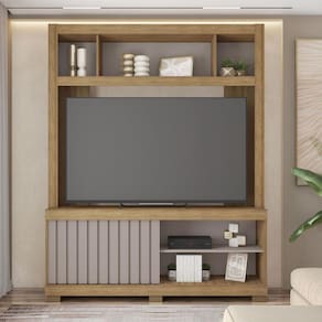 A Estante Cinne é referência em design, beleza e estilo. Ela conta com espaço para TVs de até 55 polegadas . Contém uma porta de correr com Ripado que proporciona otimização do espaço é um charme inigualável o que une a exuberância da marromza ao conforto da modernidade. Com design industrial, conta com espaços para acomodar aparelhos eletrônicos e ainda cinco nichos para acomodar suas decorações preferidas. Acabamento da Porta: Finish Foil Acabamento dos Pés: Melamínico Altura dos Pés: 5 Ambiente Principal: Sala de Estar Complexidade da Montagem: Média: pode ser montado por mais de uma pessoa e/ou necessite de maior conhecimento para montagem Cor: Mel/Cinza Cor do Produto: Mel/Cinza Cor Flex: Não Cor Interna: Mel Escala de Brilho: Fosco Escala de Brilho da Porta: Fosco Ideal para TVs até (Polegadas): 55 Itens Inclusos: 1 Estante, Kit ferragens e Manual de Montagem Manual de Montagem e Instalação: https://product-hub-prd.madeiramadeira.com.br/863624/documents/4935cca0-d20f-41a9-8548-19a1e37e1fc354595eqestantecinneediCAoa.pdf Material da Porta: MDP Material do Puxador da Porta: MDF Material dos Pés: ABS Material Principal: MDP Montagem Flex: Não Necessita Montagem: Sim Origem do Produto: Nacional Peso: 52.59 Possui Espelho: Não Possui iluminação: Não Possui Nichos: 05 Possui Pés: 06 Possui Portas: 01 Possui Prateleiras: Não Possui Rodízio: Não Possui Vidro: Não Recomendações de Uso, Manutenção e Limpeza: Limpar com pano macio levemente umedecido e em seguida pano macio seco. Não utilizar produtos abrasivos (lixas, esponjas) e/ou produtos a base de solventes (thinner, aguarrás). Sapatas Niveladoras: Não Sistema de Montagem: Utiliza-se na montagem do produto sistema de fixação minifix, dobradiças, dispositivos angulares, cavilhas, parafusos, porcas cilindricas, entre outros; Suporta Até (kg): 36 Tipo de Porta: Correr Tipo de Puxador da Porta: Embutido Ean: 7909903378151