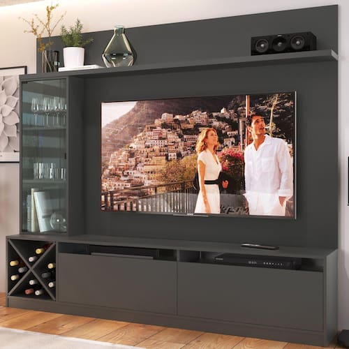 O(a) Estante para TV Até 60 Polegadas 3 Portas 2020 Montana/Grafite - Quiditá Móveis é produzido em MDP na escala de brilho Semi-Brilho, e possui um grau de dificuldade de montagem: Médio.