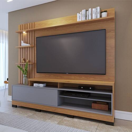O(a) Estante para TV Até 65 Polegadas Maceió 1 Porta com Led Ripado Freijo/Cinza Fosco - Colibri é produzido em MDP e HDF na escala de brilho Brilho e Fosco, e possui um grau de dificuldade de montagem: Médio.