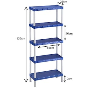 Estante Plástica Azul Com 5 Prateleiras Agraplast Cor: Azul Estante Plástica Azul Com 5 Prateleiras AgraplastDescrição Organize seus ambientes com a pratileira multi-uso.Ideal para: Lavanderias, Depósitos, Cozinha, Escritório, Garagens, Quarto de crianças, Salão de Beleza, etc...Fácil de Montar, dispensa uso de ferramentasSuper Resistente, suporta até 7 kg por prateleiraMaterial: polipropileno Tamanho do Produto 126 cm Altura x 25 cm Largura x 55 cm Comprimento Marca: agraplast