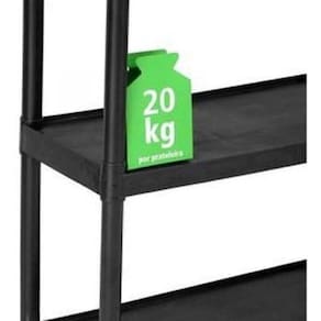 Especificações Técnicas da Prateleira Plástica Modelo Ptr 10 São Bernardo: - Marca: São Bernardo - Referencia: PTR10 - Altura 122,3cm - Largura: 38,8cm - Comprimento: 53,5cm - Capacidade: 20kg por prateleira - Material: Polipropileno - Cor do organizador para ferramentas: Preto - Peso: 2,200 Kg