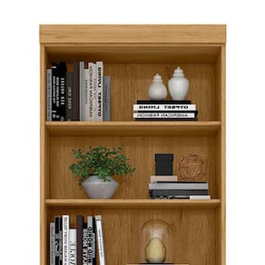 As cinco prateleiras móveis oferecem flexibilidade na organização do ambiente, perfeitas para acomodar livros, objetos decorativos e itens pessoais. As duas gavetas com corrediças metálicas proporcionam espaço adicional, mantendo seus pertences organizados de forma prática.
