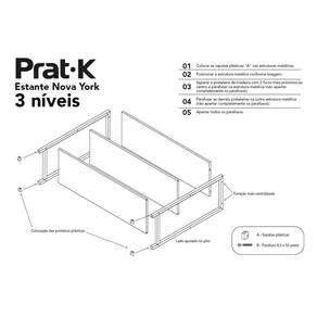 Modelo: Nova York Altura: 72cm Largura: 90cm Profundidade: 30cm Espessura do MDF: 15mm Medida do Metalão: 20x20mm Capacidade de Peso: 30 kg 10 kg por Nível Acompanha Parafusos para Montagem: Sim Acompanha Manual de Montagem: Sim Acompanha Ponteiras para Metalão: Sim Embalado: Em papelão Reforçado Ean: 7899796820076