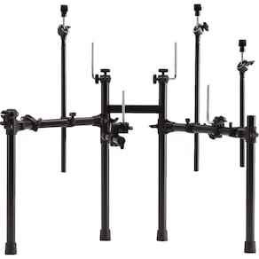 A Roland MDS-Compact é uma estante compacta e versátil desenvolvida especialmente para as baterias eletrônicas da série TD-17 V-Drums. Com design que economiza espaço sem comprometer a estabilidade, este rack apresenta uma estrutura em H integrada no centro que garante firmeza para todo o kit. As braçadeiras tipo ball-clamp permitem ajustes precisos e suaves de ângulo para os pads de caixa e pratos, oferecendo flexibilidade total na configuração. Compatível com configurações de dois ou três pratos e suporta a instalação de estantes de chimbal convencionais. Pode ser dobrada com módulo de som e pads montados para facilitar armazenamento e transporte.