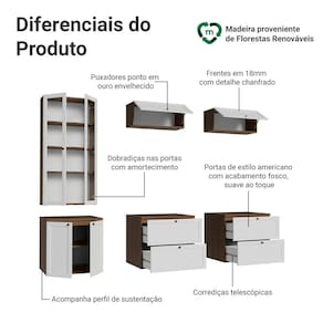 - 52cm de profundidade nos balcões e 31cm nos aéreos e cristaleira