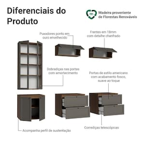 - 52cm de profundidade nos balcões e 31cm nos aéreos e cristaleira