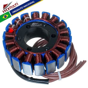 Marca : Wortech (Indústria Brasileira) Fabricação Exclusiva Instalação: Produto somente com os cabos, será necessário utilizar borracha, conectores e pulsador da peça do cliente. Código: W-ES/447 -Aplicação: BMW G 310 R (16-20)BMW G 310 GS (16-20) Características do produto: -Fio de cobre esmaltado de 200° -Resina : isolamento a base de cerâmica resistente a 1000° -Chicote : Cabos de silicone resistente a 200°-Rebobinamento dentro dos padrões do fabricante originalDimensões da carcaça: -Diâmetro Externo: 93 mm-Diâmetro Interno: 35 mm-Espessura da parte de fixação: 24 mmItens Inclusos: -01 > Estator-01 > Certificado de garantiaGarantia total de 12 meses
