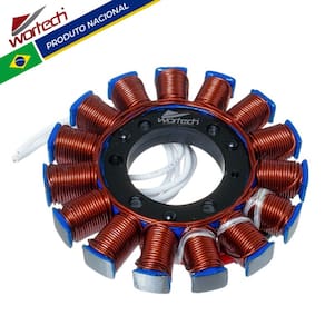 Marca : Wortech (Indústria Brasileira) Fabricação Exclusiva Instalação: Produto somente com os cabos, será necessário utilizar borracha, conectores e pulsador da peça do cliente. Código: W-ES/441-Aplicação: Honda CBR 600 RR (07-12) Características do produto: -Fio de cobre esmaltado de 200° -Resina : isolamento a base de cerâmica resistente a 1000° -Chicote : Cabos de silicone resistente a 200°-Rebobinamento dentro dos padrões do fabricante originalDimensões da carcaça: -Diâmetro Externo: 115 mm-Diâmetro Interno: 42 mm-Espessura da parte de fixação: 12 mmItens Inclusos: -01 > Estator-01 > Certificado de garantiaGarantia total de 12 meses