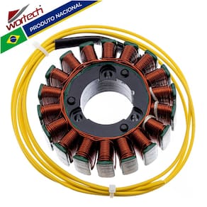 Marca : Wortech (Indústria Brasileira) Fabricação ExclusivaInstalação: Produto somente com os cabos, será necessário utilizar borracha, conectores e pulsador da peça do cliente. Características do produto: -Fio de cobre esmaltado de 200° -Resina : isolamento a base de cerâmica resistente a 1000° -Chicote : Cabos de silicone resistente a 200°-Conector: Em Nylon de alta qualidade -Rebobinamento dentro dos padrões do fabricante originalDimensões da carcaça:-Diâmetro Externo: 95 mm-Diâmetro Interno: 35 mm-Espessura da parte de fixação: 18 mmItens Inclusos:-01 > Estator-01 > Certificado de garantia- Garantia total de 12 meses