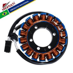 Marca : Wortech (Indústria Brasileira) Fabricação ExclusivaInstalação: Não é necessário adaptações -Aplicação: ER6N (2010-2012)Ninja 650R (2010-2012)Versys 650 (2007-2012)Zx6 (2005-2006)Características do produto: -Fio de cobre esmaltado de 200° -Resina : isolamento a base de cerâmica resistente a 1000° -Chicote : Cabos de silicone resistente a 200°-Conector: Em Nylon de alta qualidade -Rebobinamento dentro dos padrões do fabricante originalDimensões da carcaça: -Diâmetro Externo: 105 mm-Diâmetro Interno: 42 mm-Espessura da parte de fixação: 18 mmConexões: -01 > Conector 3 vias com 3 cabos brancos Itens Inclusos: -01 > Estator-01 > Certificado de garantia- Garantia total de 12 meses