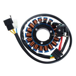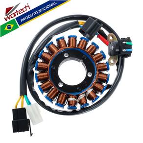Marca : Wortech (Indústria Brasileira) Fabricação ExclusivaInstalação: Não é necessário adaptações Código: W-ES/410-Aplicação:Suzuki Intruder 125 (2002-2011)Suzuki Katana 125 (1996-2002)Suzuki Yes 125 (2005-2011) Sundown STX 200Características do produto: -Fio de cobre esmaltado de 200° -Resina : isolamento a base de cerâmica resistente a 1000° -Chicote : Cabos de silicone resistente a 200°-Conector: Em Nylon de alta qualidade -Rebobinamento dentro dos padrões do fabricante originalDimensões da carcaça: -Diâmetro Externo: 93 mm-Diâmetro Interno: 35 mm-Espessura da parte de fixação: 14 mmConexões:-01 > Conector 3 vias com 3 cabos amarelos-01 > Conector 2 vias com 1 cabo verde, 1 cabo azulItens Inclusos:-01 > Estator-01 > Certificado de garantia-Garantia total de 12 meses