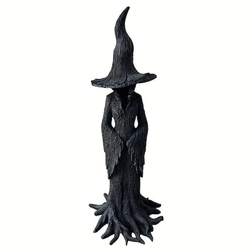 Material: Resina Tamanho: 20* 8* 9 cm Peso: 260 g ['Enigmatic Witch Design — Apresenta uma misteriosa figura encapuzada com um chapéu alto torcido e base de raiz de árvore, adicionando uma presença misteriosa e artística às telas internas ou de jardim. ', 'Construção durável em resina — Feita de resina sólida, esta estátua foi projetada para suportar condições externas, perfeita para pátios, varandas, caminhos e áreas temáticas. ', 'Dark Fantasy Aesthetic — A capa texturizada e os detalhes em madeira criam uma atmosfera gótica de floresta, ideal para realçar cenas assustadoras ou místicas. ', 'Uso versátil da tela — Adequado para decoração sazonal ou ambiente durante todo o ano, ele se encaixa perfeitamente em quintais, entradas, prateleiras ou ao lado de plantas e lanternas. ', 'Perfeito para a atmosfera de Halloween — aprimora ambientes assustadores com uma ameaça sutil e elegância artística, servindo como uma figura focal marcante em qualquer ambiente']