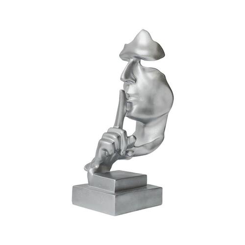 Material: resina Tamanho: 10,5 x 11,5 x 30 cm Peso: 930 g Design moderno de gestos silenciosos — Com um rosto estilizado com um dedo nos lábios, esta escultura abstrata simboliza silêncio, mistério e contemplação em uma forma artística. Estética minimalista nórdica — O acabamento prateado limpo e a base geométrica conferem uma aparência elegante e contemporânea, perfeita para estilos de interiores escandinavos ou modernos. Construção durável em resina — Feita com resina de qualidade, esta escultura oferece uma textura suave, brilho metálico e base estável para uma colocação confiável na mesa. Tamanho de tela atraente — Com dimensões de 10,5 x 11,5 x 30 cm e pesando 930 g, esta peça fica alta e elegante em mesas, estantes de livros ou balcões de recepção. Decoração artística versátil — Ideal para salas de estar, escritórios, lounges ou estúdios, ela serve como uma figura decorativa marcante que aprimora o apelo visual de qualquer ambiente.