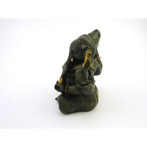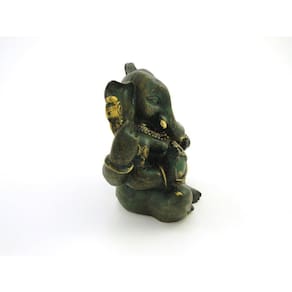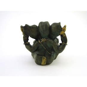 Estátua Ganesha Sentado Verde e Dourado Resina 12 cm Ganesha: Filho mais velho de Shiva e Parvati. Tem uma enorme cabeça de elefante em um corpo de menino. Conhecido como aquele que destrói os obstáculos e ajuda na conquista da fortuna. Produto pintado a mão, podendo sofrer variações de cores. Marca: Não Informado