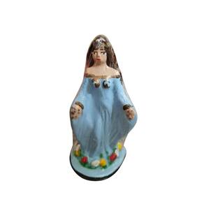 Iemanjá Imagem Yemanjá 10 cm x 4,5cm Pintada a mão com acabamento de alta qualidade. Material: Imagem em Gesso Cor: Azul e branco com detalhes coloridos Dimensões aproximadas do produto.