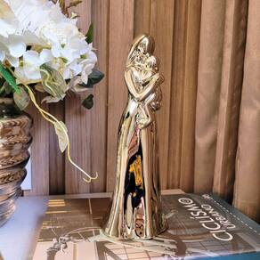 Estátua Mãe Com Bebê Dourada Decorativa 22x9x8cm Presente