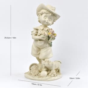 Material: resina sintética Tamanho do produto: 13 cm/5,1 pol* 10 cm/3,8 pol* 25,5 cm/10 polegadas Peso do produto: 300 g Design encantador: apresenta um adorável menino e uma menina segurando um buquê de flores com um cachorro aos pés, criando uma cena divertida e emocionante que adiciona charme a qualquer espaço. Material de resina premium: feita de resina sintética durável, a estatueta é finamente detalhada, robusta e resistente ao desbotamento, tornando-a uma peça decorativa duradoura por anos. Perfeita para casa e jardim: ideal para ser colocada em salas de estar, jardins ou como um lindo enfeite de mesa, esta estatueta traz uma energia inocente e alegre para sua casa. Artesanato delicado: cada detalhe, da roupa infantil à expressão do cachorro, é cuidadosamente esculpido e pintado à mão, oferecendo características realistas e realistas. Compacta e versátil: com 10 polegadas de altura, esta estatueta é perfeita para prateleiras, mesas, cornijas ou como peça central decorativa sem ocupar muito espaço.