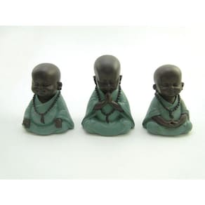 Estátua Trio Buda Mudra Preto e Verde Resina 12 cm Buda ou Sidarta Gautama: O Iluminado ou O desperto, compartilhava seu conhecimento de forma espiritual, transmitindo sabedoria, paz, serenidade, alegria e liberdade, condicionando a mente, alcançando assim o fim do sofrimento, o Nirvana. Produto pintado a mão, podendo sofrer variações de cores. Marca: Amém Decoração Religiosa Ean: 7899594115428