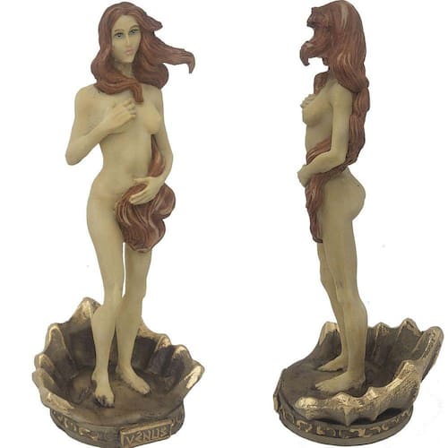 Estátua Vnus 1666 Deusa Venus é considerada protetora dos amantes e patrona dos casamentos. Deusa do amor, da beleza, da fertilidade e da sexualidade. Além de seu papel no amor e na beleza, Vênus também desempenhou um papel significativo na mitologia romana como uma deusa protetora do Estado e da prosperidade. Medidas aproximadas em cm: AxLxP 22x10x10