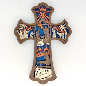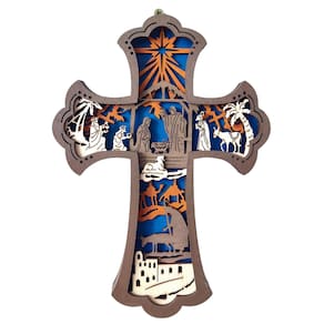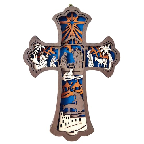 Material: buxo Tamanho do produto: 22,6 x 16,1 x 2,2 cm Peso: 182 g Design do presépio: apresenta Maria, José, o Menino Jesus, animais e a estrela-guia intrincadamente esculpida em uma cruz de madeira. Detalhe feito à mão: feito com artesanato fino, exibindo estatuetas recortadas em camadas com textura de madeira natural e fundo vibrante. Material de madeira durável: construído com buxo de qualidade, leve e resistente, garantindo o uso a longo prazo como escultura decorativa. Enfeite de parede: projetado com um gancho para pendurar facilmente em paredes, portas, janelas ou árvores de Natal. Decoração de Natal: perfeita para exibições de férias, recantos de oração ou interiores de igrejas, adicionando um toque espiritual à decoração festiva.