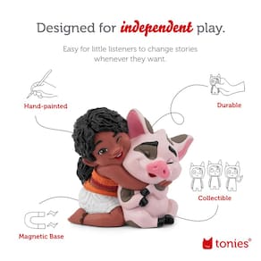 Depois de receber uma chamada inesperada de seus ancestrais que buscam caminho, Moana deve viajar para os mares distantes da Oceania e em águas perigosas e perdidas para uma aventura diferente de tudo que ela já enfrentou. Este boneco Tonie traz a magia da Disney para o seu Toniebox, com narração de histórias e vozes autênticos de estrelas como Dwayne Johnson e muitos outros!