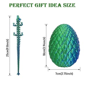 Dragão impresso em 3D, ovos de dragão com dragão dentro, dragão de cristal, dragão articulado impresso em 3D, novo dragão de cristal totalmente articulado com ovo de dragão, presentes de Páscoa - 🐉 Dragão impresso em 3D: descubra a magia interior, crie um dragão de cristal mágico com nosso ovo impresso em 3D de 3,94"! Experimente a emoção de revelar o mistério escondido por dentro. - 🐉 Design realista, sensação autêntica: os detalhes intrincados do ovo de dragão e do dragão impresso em 3D proporcionam uma experiência autêntica para colecionadores e entusiastas. Com dobradiças robustas conectando a cabeça, o tronco, os membros e os pés, você pode posicionar o dragão em várias posições para obter a máxima flexibilidade de exibição. - 🐉 Horas de diversão sem fim: este não é apenas um ovo de dragão visualmente deslumbrante, é também uma fonte de entretenimento sem fim! Passe horas interagindo com seu dragão 3D, girando-o, girando-o e posicionando-o de maneiras diferentes. Seja voando pelo ar ou empoleirado majestosamente em uma prateleira, as possibilidades são realmente infinitas. - 🐉 Material de PLA seguro e ecológico: tenha certeza de que nosso dragão impresso em 3D é feito de PLA, um material que é seguro para alimentos e ecológico. É perfeito para exibição em sua casa ou escritório, combinando segurança com estilo. - 🐉 Estatueta de dragão aprimorada com gemas: nossa estatueta de dragão chinês personifica o espírito de um brinquedo criativo e moderno, oferecendo um toque refrescante aos itens colecionáveis tradicionais. Também serve como um presente único e significativo para seus entes queridos, transmitindo suas bênçãos e carinho de uma forma verdadeiramente especial. Surpreenda e encante seus amigos e familiares com este presente único.