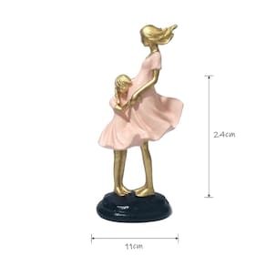 Design Encantador: Esta estatueta apresenta uma família composta por uma mãe grávida abraçada com sua filha. O design é delicado e expressivo, transmitindo uma sensação de união e afeto.