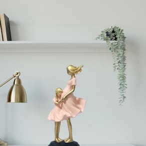 Tamanho Ideal: Com dimensões cuidadosamente selecionadas, esta estatueta é grande o suficiente para ser notada como um ponto focal em uma estante, mesa de centro ou prateleira, mas ainda mantém uma escala que se encaixa perfeitamente em diversos ambientes domésticos.