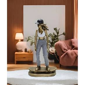 1 Estatueta Decorativa De Skatista Mulher Em Resina De 26cm;