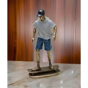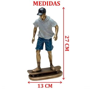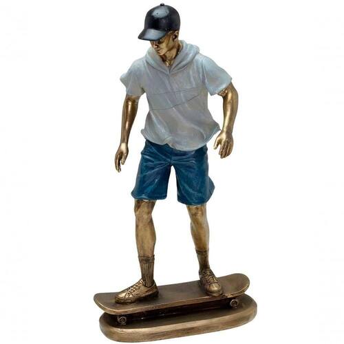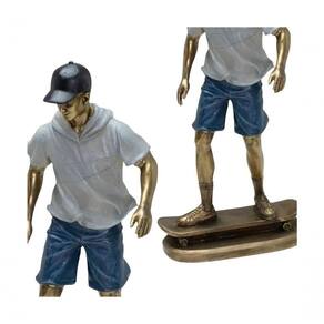 Características Gerais do Produto: - Material: Resina - Modelo: Escultura Skatista - Cor: Azul; Bronze; Cinza; Preto - Dimensões aproximadas: Altura 27cm X Largura 13cm X Comprimento 9cm Garantia: - Garantia contra no