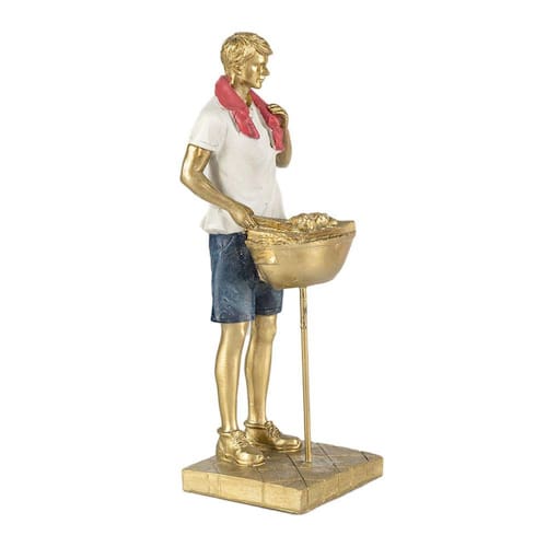 Estatueta Homem Gourmet De Resina Dourada Decoração 25x8,5cm