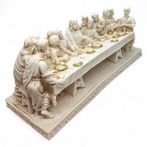 Transforme seu ambiente com a força espiritual e simbólica da Estatueta Jesus e a Última Ceia, feita em resina branca de alta qualidade. Essa peça representa um dos momentos mais marcantes da fé cristã, trazendo à sua casa a mensagem de comunhão, entrega e esperança.