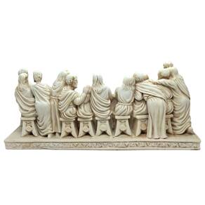 A Última Ceia em detalhes emocionantes Cada personagem foi esculpido com cuidado e expressão, retratando Jesus e seus discípulos em um dos eventos mais profundos da Bíblia. A cor branca simboliza pureza, paz e espiritualidade.