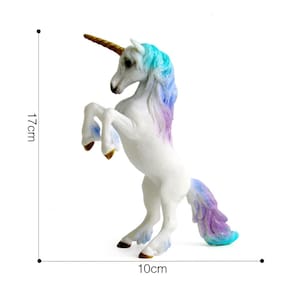 2 peças de estatueta de unicórnio mágico — modelo PVC Pegasus, unicórnio arco-íris colorido com crina brilhante, brinquedo Fantasy Horse para crianças, 10 cm x 17 cm Descrição: Material: PVC Tamanho: 10 cm x 17 cm Peso: 294 g Características: Design encantador: esta estatueta de unicórnio apresenta uma vibrante crina e cauda coloridas do arco-íris, com um lindo acabamento em glitter, capturando a essência mágica de um cremoso mítico natureza. Seguro e durável: feito de PVC não tóxico e de alta qualidade, este modelo de unicórnio é seguro para crianças e construído para suportar horas de brincadeiras criativas. Brincadeira educativa e criativa: perfeita para inspirar criatividade e imaginação, essa figura de unicórnio ajuda as crianças a explorar mundos míticos e desenvolver habilidades de contar histórias. Ideal para exibição: este unicórnio mágico é uma peça decorativa deslumbrante para salas temáticas de fantasia, salas de aula ou como parte de uma coleção. Ótima para todas as idades: adequada para crianças de 3 anos ou mais, esta estatueta de unicórnio é perfeita para brincadeiras de fingir, para fins educacionais ou como item colecionável para amantes de unicórnios. O que vem na caixa: 1 x 2 peças de estatueta mágica de unicórnio
