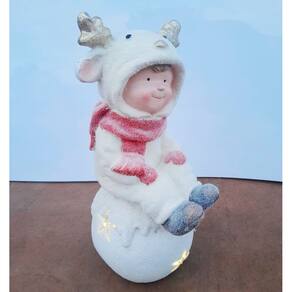 Estatueta Natal Enfeite Criança Sentada Na Bola De Neve 43cm -