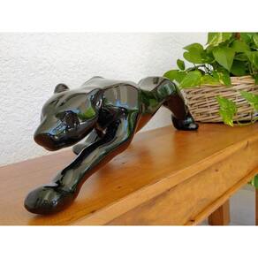 Quer reinventar o décor do seu lar Essa estatueta Pantera Negra em cerâmica com pintura em resina laqueada, permite inúmeras possibilidades decorativas e vai deixar seu ambiente ainda mais charmoso