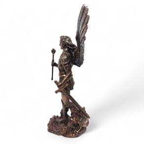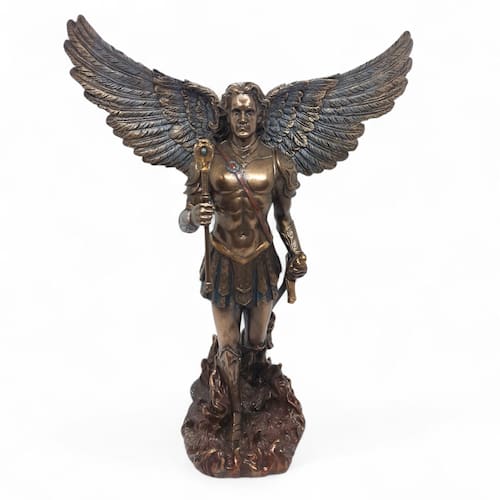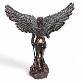 A temática religiosa da escultura representa a força e a proteção do Arcanjo Miguel, tornando-a uma peça ideal para devotos e colecionadores. O acabamento perfeito garante que cada detalhe da escultura em detalhes seja realçado, proporcionando uma experiência visual única.